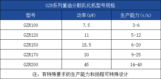 GZR型重油分散乳化机是专用于处理重油、渣油、沥青及类似物料的乳化粉碎设备。该机的高剪切线速度和高频机械能的切割、挤压、震荡,使上述物料中的悬浮物、颗粒物、胶质和水分得到分散、乳化和粉碎,使之成为细化均匀稳定的燃油。